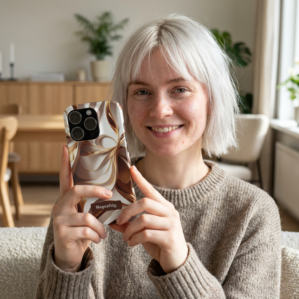 A slim, glossy phone case wrapped in warm, flowing swirls of cream, caramel, and bronze. The glossy Lexan surface makes the marbled design come alive with depth and light, while the lay-flat bezel keeps your screen gently raised to reduce everyday scuffs. Featherweight but impact-resistant, this case slips comfortably into pockets and supports wireless charging so your routine stays effortless. Itβs a subtle statement piece β elegant, tactile, and built to move with you through coffee runs, commutes, and evenings out.